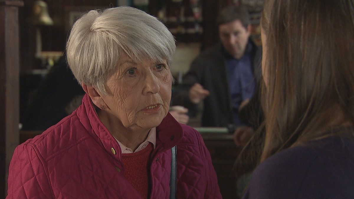 Mae Britt yn rhoi amser caled i Megan. A wnaiff hi newid ei datganiad i'r heddlu er mwyn achub Colin? Will Megan change her police statement in order to save Colin?