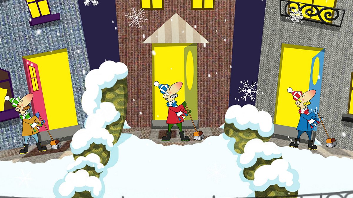 "Plu Eira Ydym Ni", cân am blu eira'n disgyn ar bentref a'i phentrefwyr. "Plu Eira Ydym Ni" is a song about snowflakes falling on a village and its villagers.