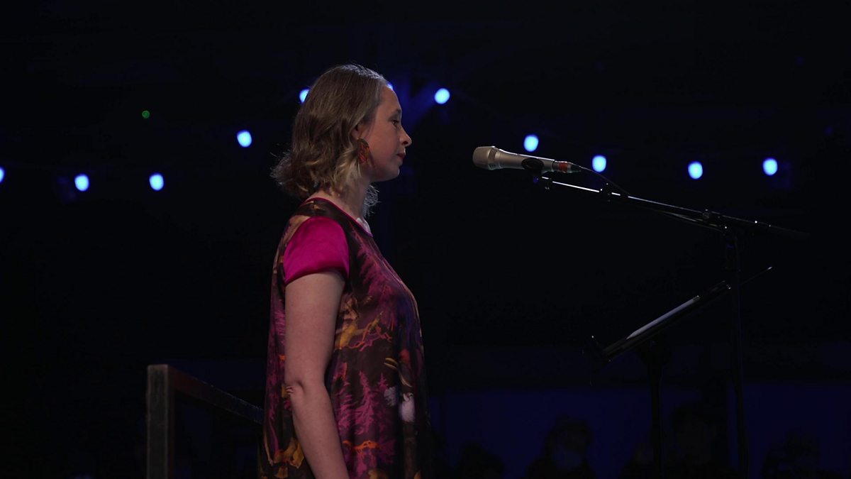 Soprano Juliet Fraser performs Janet Beat’s 'Puspawarna (1989 – 90) for voice, gong and electronics'.