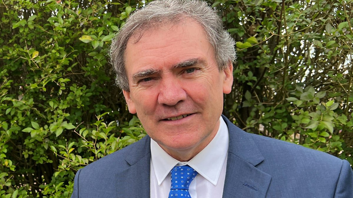Rhodri Davies sy'n sgwrsio gyda Llywydd NFU Cymru, Aled Jones.