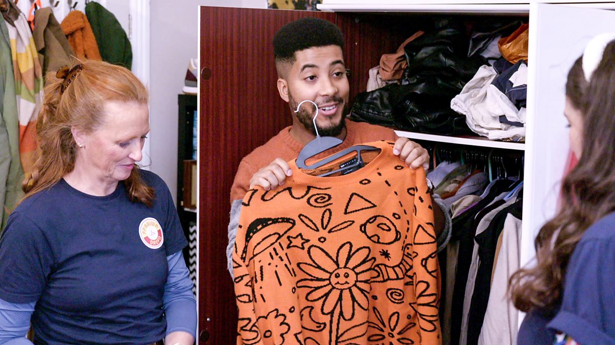 Y tro hwn, cwpwrdd dillad Dafydd Lennon o Gaerdydd sy'n cael ei drawsnewid. This week, the team will be decluttering and transforming Dafydd Lennon's wardrobe at his home in Cardiff.