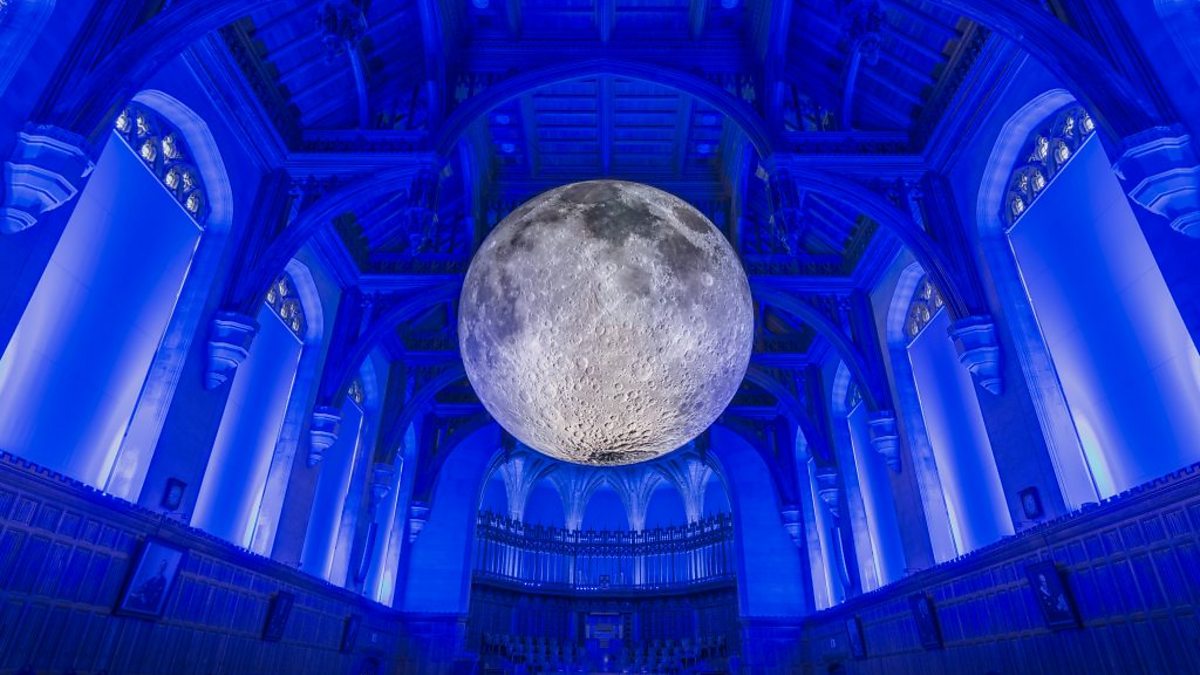 The Museum of the Moon art exhibition is coming to the town's Corn Exchange and features a giant model of Earth's Moon.