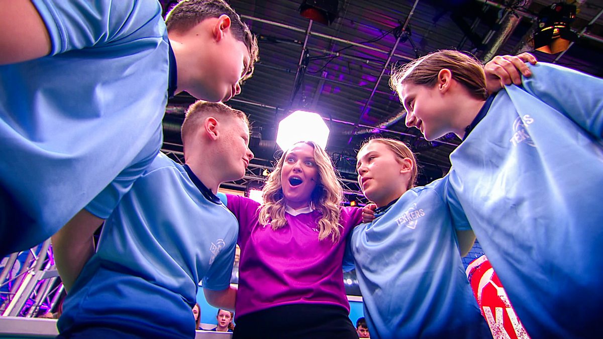 Pwy fydd yn fuddugol - y tîm glas o Ysgol Pen-y-groes neu Ysgol Tan y Lan, y tîm oren? Who will win this week - the blue team from Ysgol Pen-y-groes or Ysgol Tan y Lan - the orange team?