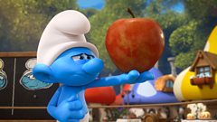 Cartwn eiconig am anturiaethau nifer o gymeriadau bach glas sy'n byw yn y goedwig. Iconic cartoon about the adventures of a crew of little blue characters who live in the forest.