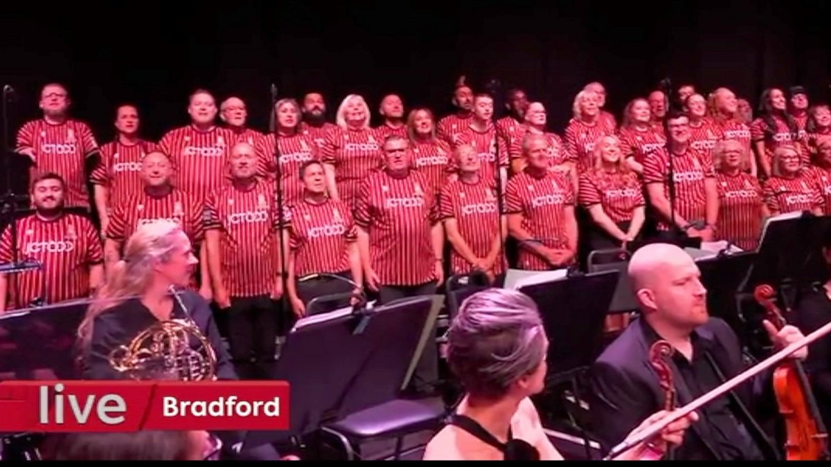 The choir, made up of 50 Bradford City fans, performed in the newly refurbished Bradford Live. They sung alongside Aled Jones, Chris Kamara and the Yorkshire Symphony Orchestra.