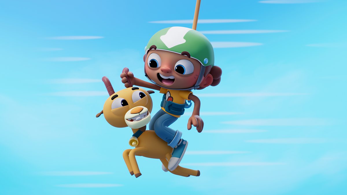 Mae Mojo a Bo yn hedfan yn uchel i hel dail blasus, ond mae gan yr afr syniadau eraill! Mojo and Bo fly high for yummy leaves, but a stubborn goat has other ideas.