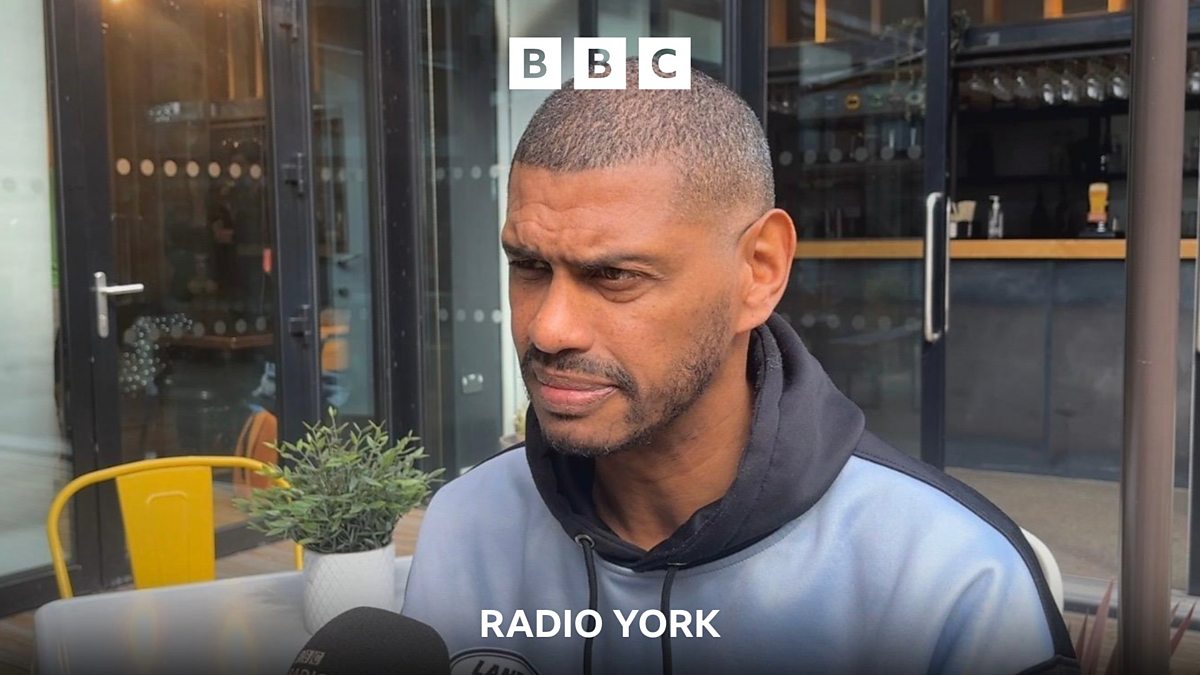 York Valkyrie head coach Leon Pryce speaking to Tim Steere, at the launch of the Women's Super League season