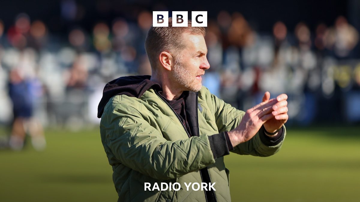Harrogate Town manager Simon Weaver speaks to Tim Steere after the side's 2-0 victory away at Walsall in League Two.