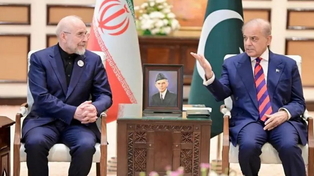 (Photo: Pakistani Prime Minister Shehbaz Sharif meets with Iranian Parliament Speaker Mohammad Bagher Ghalibaf (L). Credit: Reuters)
