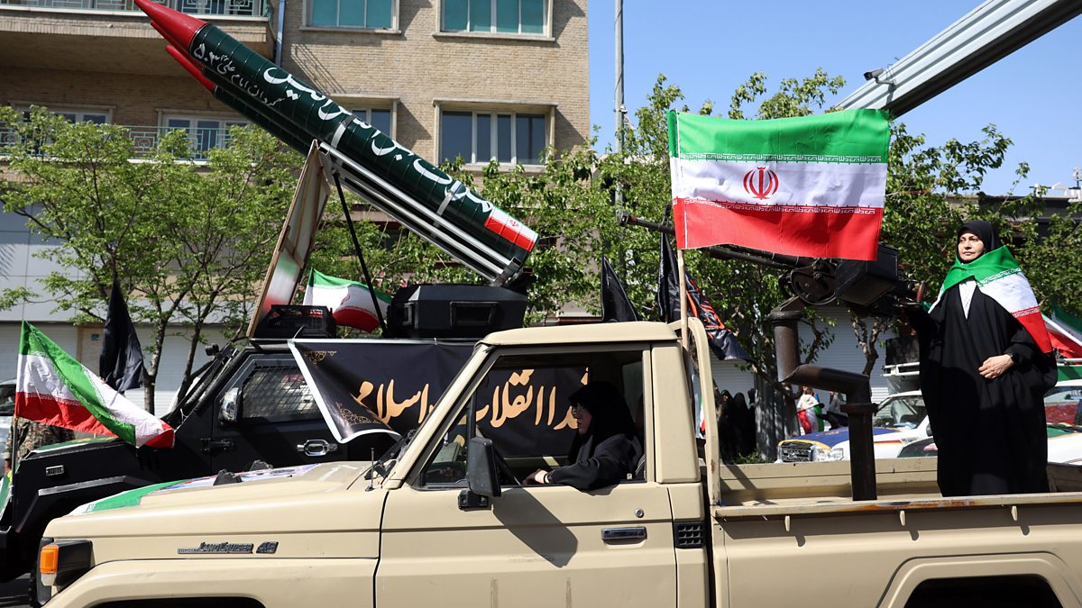 (Photo: Iranian women ride a military vehicle during an anti-US and Israeli rally called 'sacrificed girls' in Tehran; Credit: Abedin Taherkenareh/ Tehran, Iran)