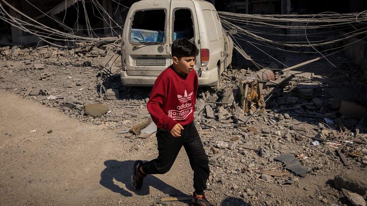 (Photo: A boy runs past a damaged building at the site of an Israeli strike in Tyre, Lebanon, April 8, 2026. Credit: Adnan Abidi/Reuters)