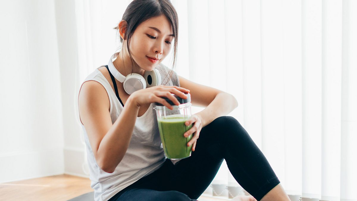 (Picture: A woman drinking a smoothie after exercise. Photo credit: Oscar Wong/Getty Images.)