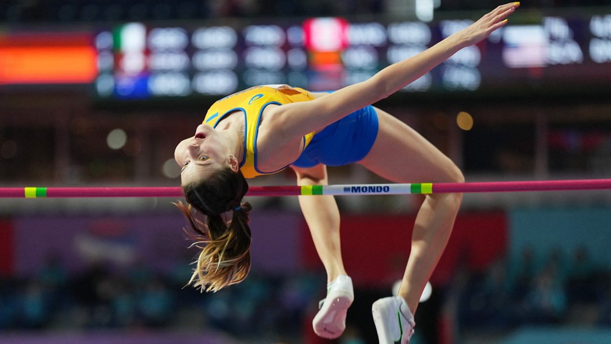 (Image: Ukraine's Yaroslava Mahuchikh in action during the high jump at the 2022 World Athletics Indoor Championships. Credit: Reuters)