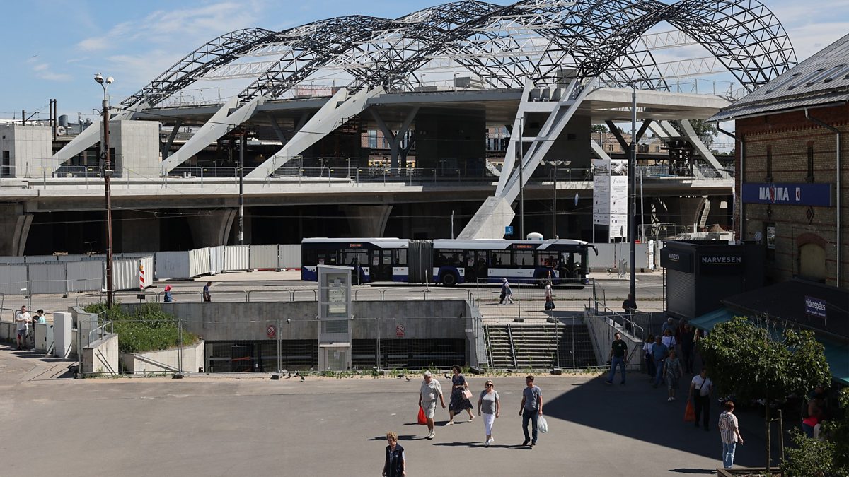 (Image: The partly-built Rail Baltica Riga central hub in Riga, Latvia, in June 2024. Credit: Andrey Rudakov/Bloomberg via Getty Images)