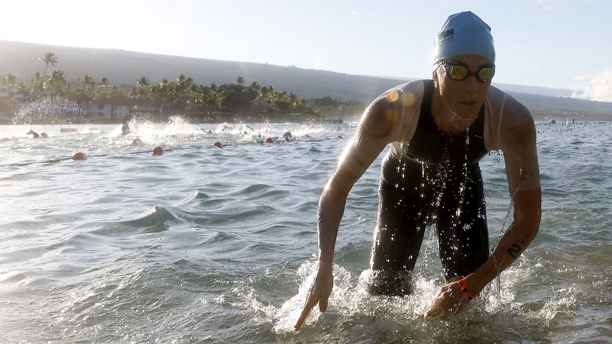 Photo: Lucy Charles-Barclay of Great Britain runs out of the water to transition to the bike portion during the VinFast IRONMAN World Championship on October 14, 2023 in Kailua Kona, Hawaii. (CREIDT Sean M. Haffey/Getty Images for IRONMAN)