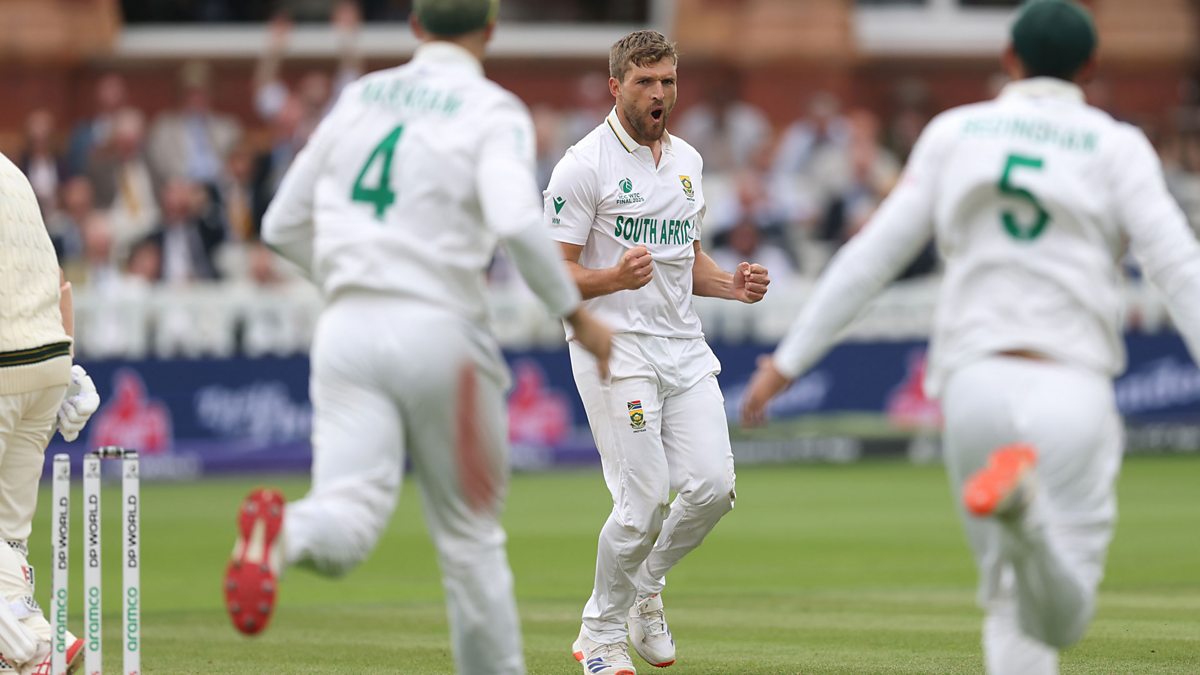 Photo: Wiaan Mulder of South Africa celebrates taking the wicket of Travis Head of Australia during day two of the ICC World Test Championship Final 2025 between South Africa and Australia at Lord's Cricket Ground on June 12, 2025 in London, England. (Credit: ICC via Getty Images)