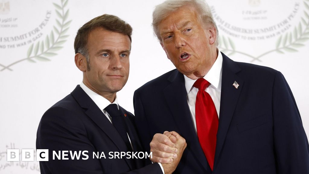 Potpis ispod fotografije, Makron i Tramp u oktobru 2025. tokom susreta u Egiptu