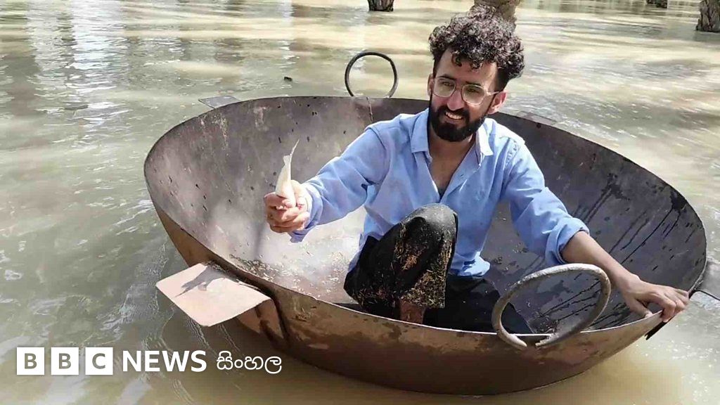 පකිස්තානයේ ගම්මානයක ජනතාව ගංවතුර අතරතුර ආහාර ලබා ගැනීම සඳහා නව විසඳුමක් අනුගමනය කර ඇත - ඔවුහු යෝධ ඉවුම් පිහුම් බඳුනක මසුන් ඇල්ලීමට යති.