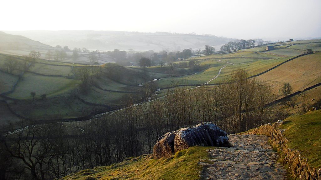 In 1965, after 30 years of campaigning led by the rambler Tom Stephenson, the Pennine Way was officially opened on Malham Moor in the Yorkshire Dales. Stretching from Edale in Derbyshire to Kirk Yetholm in the Scottish borders, the 268 mile route has attracted tens of thousands of walkers over the intervening years. To celebrate the 50th anniversary this year, Mark Radcliffe travels the route and meets up with poets, folk musicians, historians and local people along the way. In the second of three programmes, Mark travels from Malham to the village of Greenhead near Hadrian's Wall. He visits the Wensleydale Creamery to find out how they make Wallace and Gromit's favourite cheese and goes in search of Britain's highest pub. He meets up with Teesside folk group The Young'uns, who give a rousing performance of the Graeme Miles' song 'Jack Ironside'. Producer: Elizabeth Foster/Presenter: Mark Radcliffe.