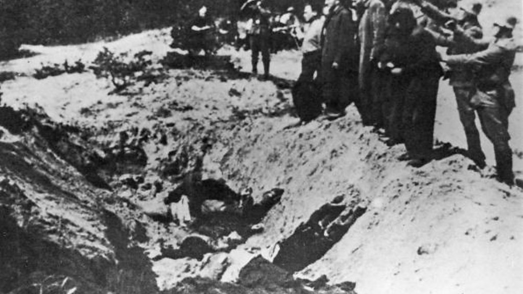On 29 September 1941, the organised massacre of Ukrainian Jews began. In the capital Kiev, most of them were taken to a place called Babi Yar, and shot. Raissa Maistrenko escaped the shooting as a three-year-old girl. Rabbi Alexander, Dukhovny's mother survived the Holocaust outside the city. Photo: Hulton Archive/Getty Images
