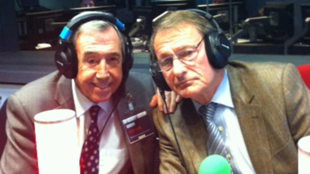 Footballing legends Gordon Banks and Roger Hunt speaking to 5 live Weekend Breakfast about the 50th anniversary of the Pools Panel.