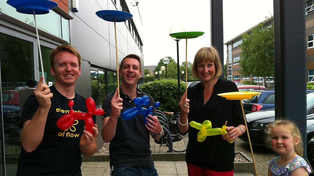 Nick learns circus skills with Guy Smith from the Fen Edge Festival.