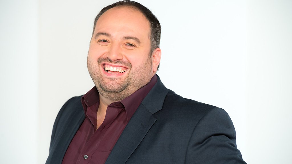 Daf a Caryl yn sgwrsio gyda'r cyflwynydd a thenor Wynne Evans