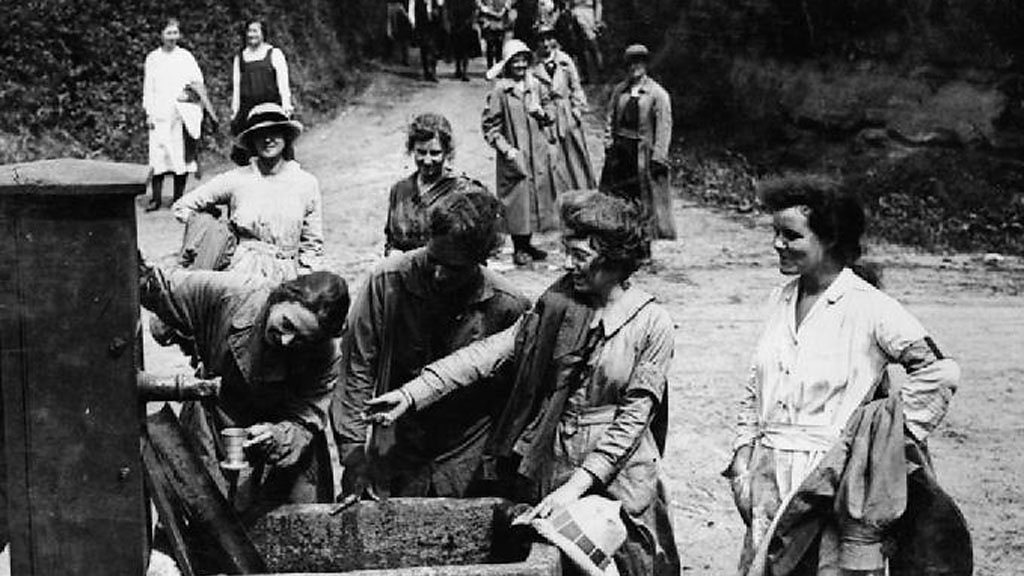 In 1918, Winifred Sandford was a 20-year-old trainee teacher from London when she answered the call and joined the Women’s Land Army. Lady Gertrude Denman (Baroness Denman) was appointed by the Government to organise the use of female labour at a time when many farmers resisted unofficial attempts to encourage them to take on women workers. Winifred soon found herself working on a farm in the village of Barwick two miles south of Yeovil and close to the Somerset/Dorset border. Winifred was just one of hundreds of ‘land girls’ who came to the Yeovil area during the war, but they didn’t rear livestock or plant food crops. Sleeping eight to a tent or in the open air if the weather was good, Winifred’s day job was hard and arduous. During the harvest of 1918, she hand-picked flax which was taken away and made into cloth coverings for bi-planes. This was far from easy for the women working in the fields. As the plant matures, the seed heads form a sharp pin at the top which would regularly stick in to the hands of the harvesters. This hard physical labour often left Winifred and her friends with festering hand sores. In 1918 there was an influenza pandemic (often called the Spanish ‘flu) and some of the girls succumbed to the outbreak. During her 10-week stay in Barwick, pulling flax for aeroplane construction, Winifred and the other 600 young women on the farm, earned a shilling a day (five pence). As the war waged on across the Channel and around the globe, the fields near Yeovil resembled some kind of scout jamboree as about 75 bell tents went up to house the girls. There was no room for suitcases so the land girls carried all their possessions in ‘pilgrim’ or picnic baskets. They were young, inexperienced and many had never left the city before. Some were so naive they would be frightened of the farm cattle or to lay awake at night worried that their long hair might be eaten by the livestock. The Land Army camp became something of a local curiosity for the townsfolk of Yeovil. At weekends large numbers of people would walk or cycle to Barwick to catch a glimpse of women living in the open air and wearing trousers, which was unheard of in polite society. Once the war was over and the men of Somerset returned to the farms and small holdings, the task of the Women's Land Army was over. The vast majority of women returned to their home towns and cities. But their work wasn't forgotten and the legacy of World War One land girls can be found two decades later when the call for help went out once more. Winifred and her compatriots were the role models for the Women's Land Army and Timber Corps of World War Two. The story of the land girls and Lumber Jills of 1939-45 is better known and more richly documented, but its roots, inspiration and success lies in the work carried out in the fields and farmyards of World War One. For thousands of years flax was at the heart of an important British industry. It was first cultivated in the Bronze Age. It was grown, harvested, spun and processed in to yarn for use as cloth or cordage. Today there is virtually no flax grown for use as cloth in Britain with just a single half-acre field used for commercial production in the entire country. But until the 1950s its straw-like stems and beautiful blue flowers were a common sight across Somerset and throughout England, Wales and Scotland. Location: Yeovil, Somerset BA22 Image shows flax workers drinking from the village pump after a day in the fields near Yeovil Photograph courtesy of Imperial War Museums Presented by Anne Cooper