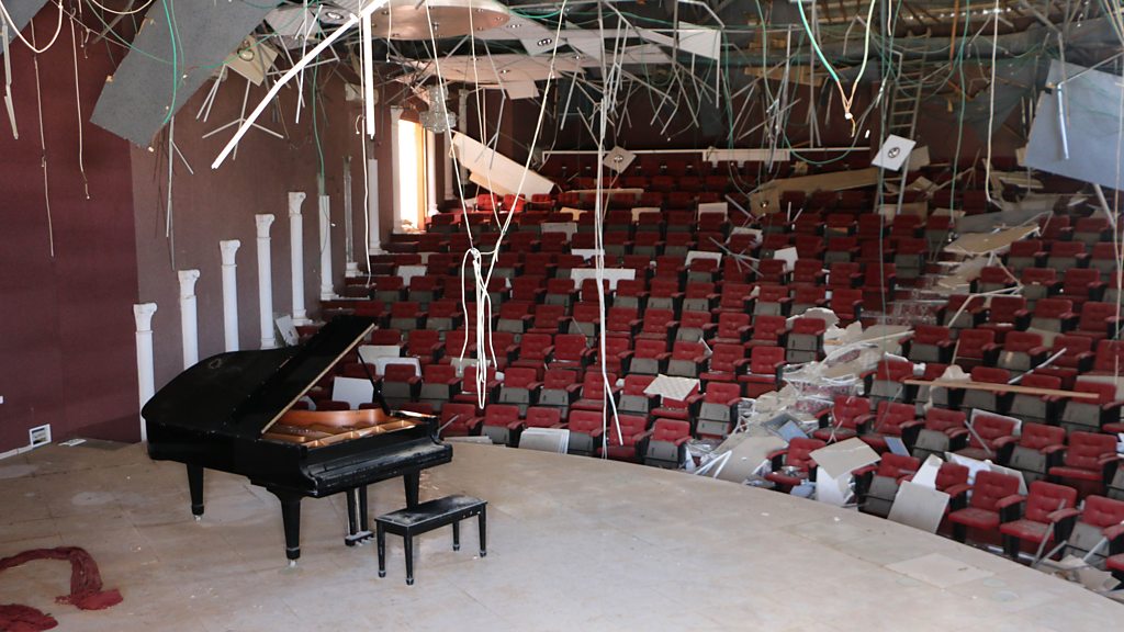 It has been hidden away in a dusty corner of an abandoned theatre, unplayed and almost forgotten - a magnificent instrument allowed to moulder away in a territory whose Islamist rulers banned public performances of music. But now Gaza's only grand concert piano is getting a new lease of life. A small Brussels-based charity is restoring it to its former glory and at the same time is working to bring music back into schools. With Hamas control steadily weakening the charity has begun a unique project to train teachers in Gaza to reintroduce music into the curriculum - not through music classes but through subjects such as mathematics and geography. It is helping disturbed children in this war torn territory to concentrate - and it is exciting teachers. Tim Whewell gets exclusive access to the story of Gaza and its grand piano. (Photo: Gaza’s only grand concert piano in the theatre half destroyed by a rocket attack. BBC copyright)