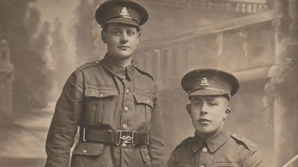 Victorian Yeovil may have been known as the world capital of glove-making, but before World War One nobody would have seriously thought that gloves would seal a man’s fate. However, a single session of the local military tribunal in 1917 determined the future for almost a hundred men; and for two in particular. What’s more it was all down to a huge government order for clothing. On 13 September 1917 the local military service tribunal, sitting in Yeovil Town Hall, was due to consider the cases of ninety-nine men who were appealing against conscription. There were seven grounds on which men could be exempted from serving in the armed forces; it being in the national interest to remain in non-military work, to be about to start certain non-military work, essential training or education, serious hardship, ill health, conscientious objection or employment in a reserved occupation. All the men being considered that day worked in the glove industry. The military representative in the Town Hall, Mr FW Mayo, was concerned about a series of large War Office contracts for gloves. It was vital that the orders were met and completed by the end of the year so that they could be transported to the fighting forces on the Western Front. That meant big business for local firms in the glove-making industry but it also required experienced men to stay behind to complete the work. So, in a highly unusual move, the tribunal decided to allow ninety six of the ninety-nine applicants to stay in the factories until at least 1 February 1918. The cases of just three men were thrown out. Mr Roberts was a 39-year-old manufacturer who was recommended for conditional exemption; presumably a short stay of execution while he put his business affairs in order. The other two were a pair of 18-year-old lads. Reg Sweet had just finished his apprenticeship as a glove cutter and Bert Jennings had recently qualified as a leather dresser. They were new to the industry with little in the way of experience. But crucially for the military authorities they were young, fit men who would have been more useful as replacements at the front than working in the factories of Yeovil. With the Third Battle of Ypres (Passchendaele) raging over the Channel in Belgium, the demand for service supplies and clothing would have been uppermost in the minds of the tribunal’s military advisors. So within weeks Reg and Bert found themselves at the Taunton Military Depot where they were sent to the Wiltshire Regiment and subsequently served together in ‘A’ Company, 2nd Battalion The Wilts. But tragically only one of them returned safely to the soft, undulating landscape of south Somerset they both called home. Reg was a company runner, he was awarded the Military Medal for carrying messages under fire and he survived the shrapnel wounds he received just weeks before the end of the war. However, Bert was less fortunate. He was killed in action on 31 May 1918 and is buried in the Chambrecy British Cemetery near Reims. Today, nothing remains of the place where Reg and Bert’s fate was decided. A fire ripped through the Town Hall in 1935, destroying the landmark building beyond repair and now a row of drab, rather pedestrian-looking shops sits in its place. The only remnant of the Great War era on the site is a small section of wall made of red brick and Yeovil stone, part of the Corn Exchange which sat behind the Town Hall. Location: Site of the former Town Hall, Borough Arcade, High Street, Yeovil BA20 1RX Image: Reg Sweet and Bert Jennings in March 1918, courtesy of the Jack Sweet Collection