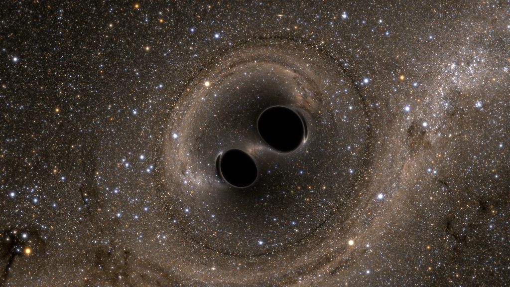 For the first time, scientists have detected tiny, rhythmic distortions in space and time. They are gravitational waves caused by the collision of two black holes. And they were predicted by Einstein 100 years ago. The international team says the first detection of these gravitational waves will usher in a new era for astronomy. The research, by the LIGO Collaboration, has been published today in the journal Physical Review Letters. Here is an explanation of the discovery from British physicist Dr. Ceri Brenner. (Picture: The collision of two black holes—an event detected for the first time ever by the Laser Interferometer Gravitational-Wave Observatory, or LIGO—is seen in this still from a computer simulation; Credit: SXS)