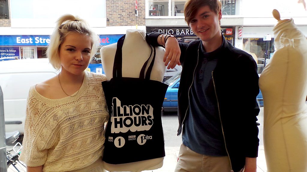 Jack volunteers as a stylist and Abbie as a model in a Cancer Research UK charity shop.