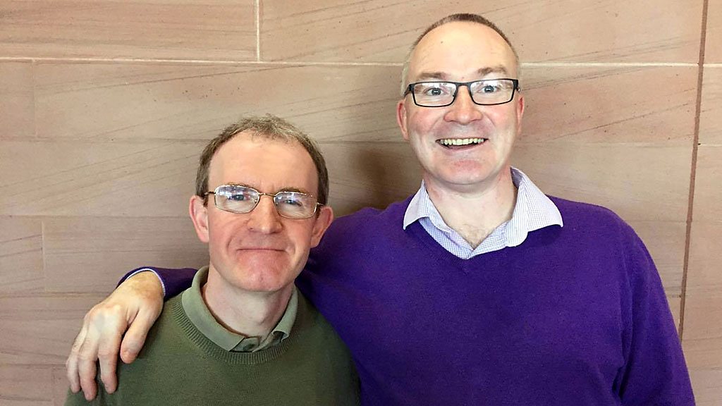 Iain Urchardan a' còmhradh ri neach-ionnsachaidh na seachdain Garry Pàdraig Cooke