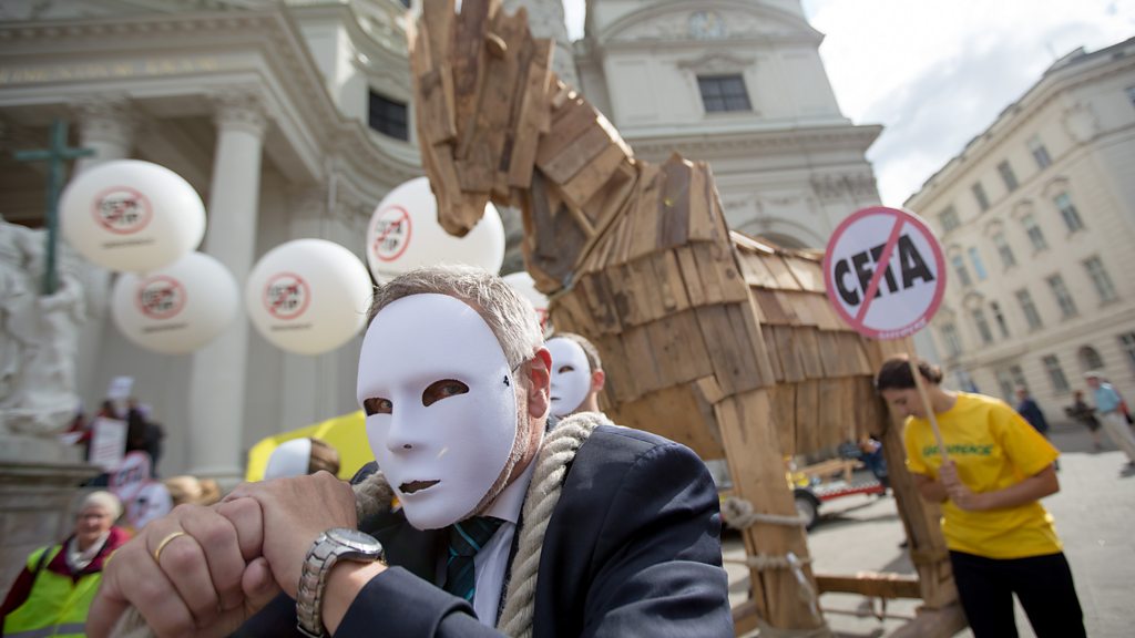 The impact of globalisation has been very much in the spotlight with the wave of populist rhetoric of late. We heard it in Britain with the Brexit referendum to leave the EU, and now with the arguments of US presidential candidate, Donald Trump, who thinks recent trade deals with China, Latin America and beyond have short-changed American workers. Until the global financial crisis of 2009, free trade seemed like an ambition everyone believed in. Today - not so much. Currency manipulation, tariffs and state support - they all mean that one person's free trade is another person's rip off. Is globalisation now in retreat? Should it and can it, be abandoned? And what is globalisation anyway? The BBC's Ed Butler is joined by Professor Jeffrey Sachs, US economist and UN adviser based at Columbia University, Michael Stumo, Head of the Coalition for a Prosperous America, which opposes many of his country's recent trade deals, and Professor Pankaj Ghemawat, from the New York University Stern School of Business and IESE Business School in Barcelona. (Photo: Demonstrators pull a Trojan horse as they protest against the transatlantic trade deals CETA and TTIP in Vienna, 2016. Credit: Georg Hochmuth/AFP)