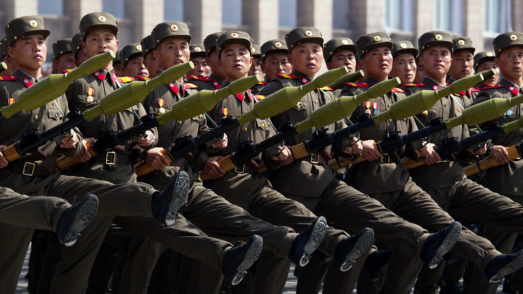 Dr Bruce Bechtol, a professor at Angelo State University in Texas and formerly the Pentagon’s top Northeast Asia analyst, describes what the first weeks of fighting with North Korea would look like. (image: North Korean soldiers march during a military parade. Credit: Ed Jones/Getty Images)