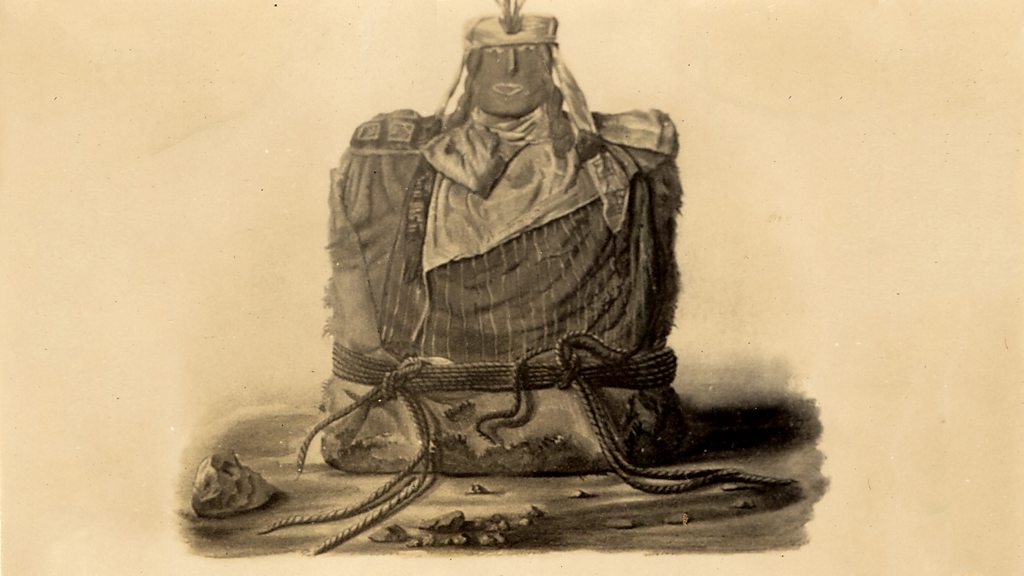 Jago Cooper from the British Museum tells Neil MacGregor about the role played by ancestors in the Inca Empire. The “mummy bundles” they describe were mummified some time around 1500. Illustration © The Trustees of the British Museum.