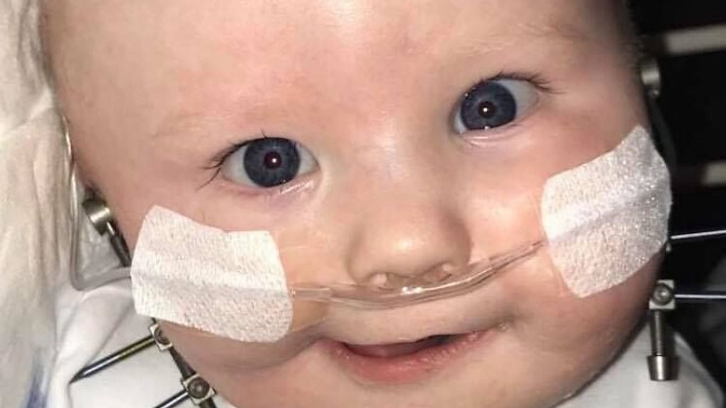 Noah Connell has a rare condition which could have stopped him from breathing. It is believed he is the only baby in the world to go through this jaw 'scaffolding' operation.