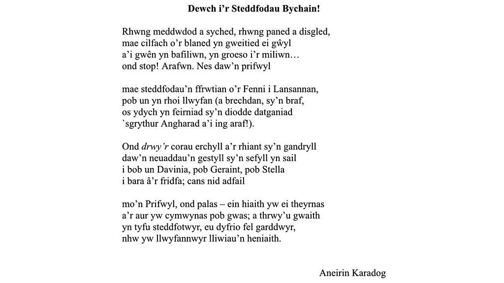Cerdd gan Aneirin Karadog ar gyfer Bore Cothi.
