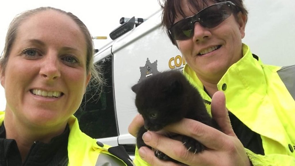 This tiny black kitten has been dubbed 'Lucky' after being rescued from the middle of the A39 near Wadebridge.