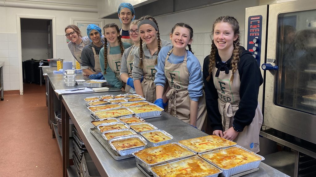 A group of teenagers is making meals for people helped by a food box scheme. The students at Ansford Academy have set up FED Community Kitchen. They make ready meals once a month using food donated by local businesses. Image: Ali Ray