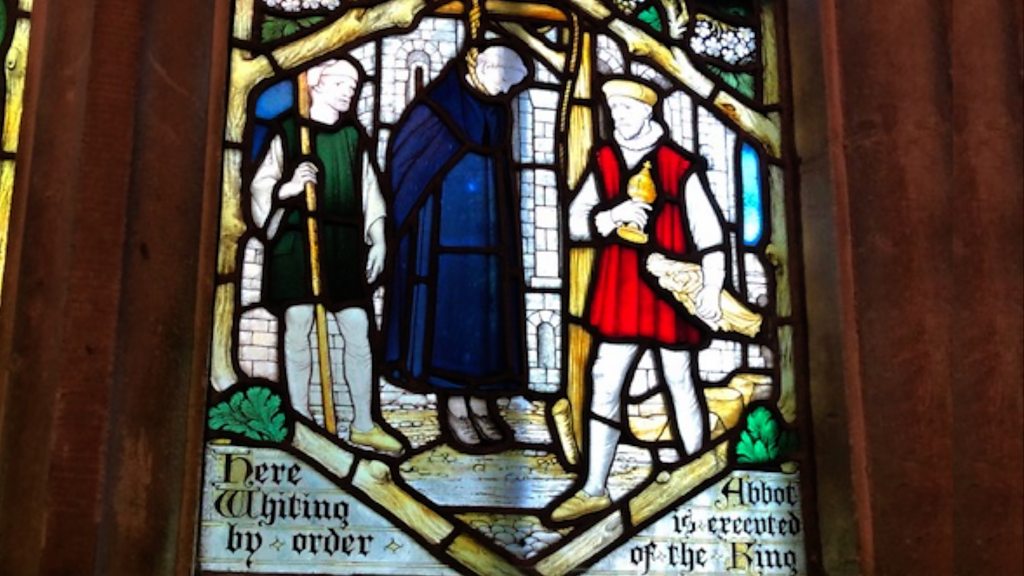 Abbot Richard Whiting was hanged, drawn and quartered on Glastonbury Tor in 1539. He was arrested on a charge of treason as King Henry VIII dissolved, or forcibly closed, the country's monasteries. Charlie Taylor talks to Amanda Marshall and Tor Webster, two of the people asking the Queen to pardon him as part of her Platinum Jubilee celebrations. Image: Church of St Peter and St Paul, Longbridge Deverill