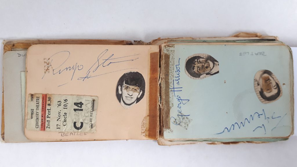 A complete set of Beatles autographs - along with snapshots of Sir Paul McCartney and George Harrison - will be sold at auction next month. The set was collected by Gwen Payne when she was just 14, and went with friends to the Coventry Theatre on 17 November 1963. Gwen has been speaking to Vic Minett about her collection.