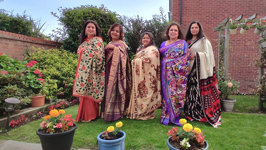Ladies all taking part in the Saree Walkathon to mark National Handloom Day.