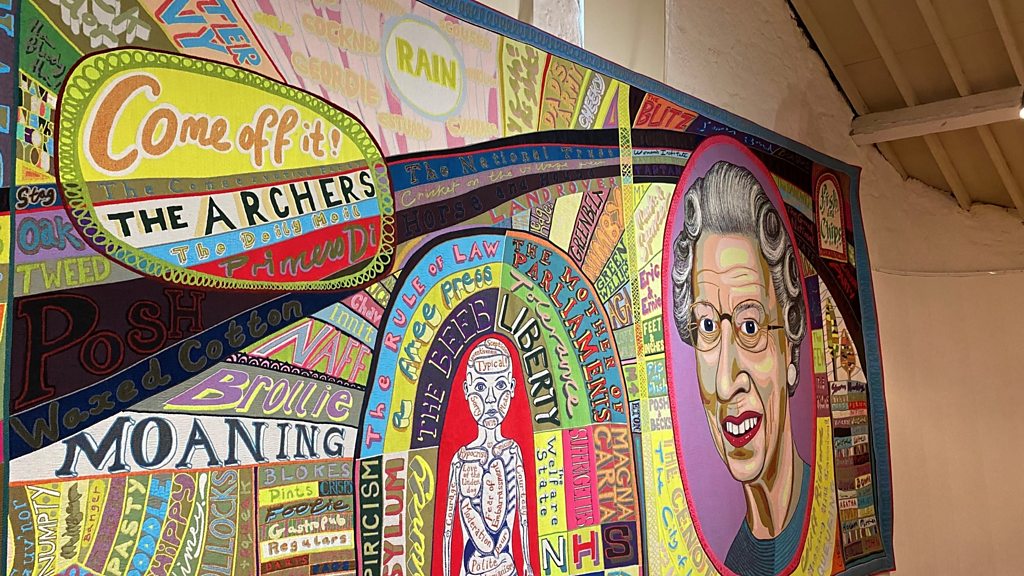 Tiffany Truscott visits Grayson Perry's "Comfort Blanket" tapestry in Helston