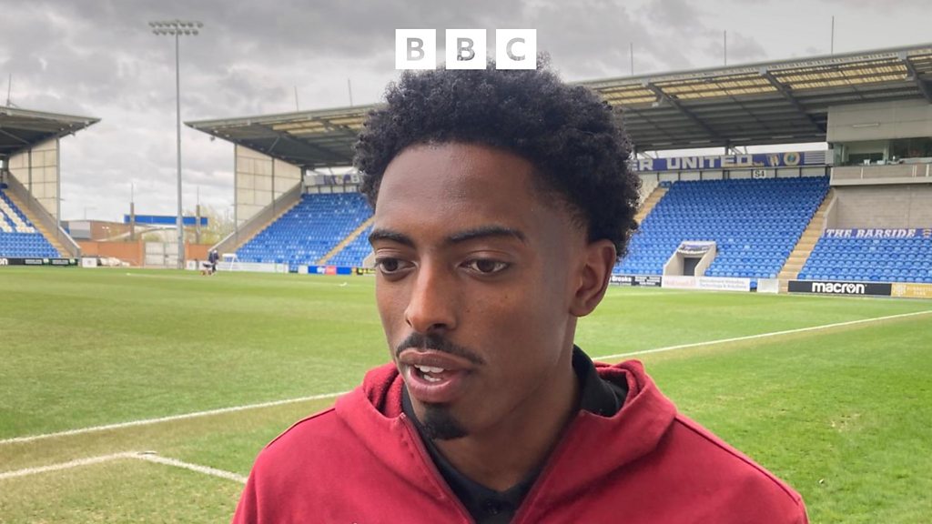 The Colchester United forward Kyreece Lisbie after scoring in the U's 3-1 League Two defeat to Oldham Athletic. (Image credit: Neil Kelly/BBC)