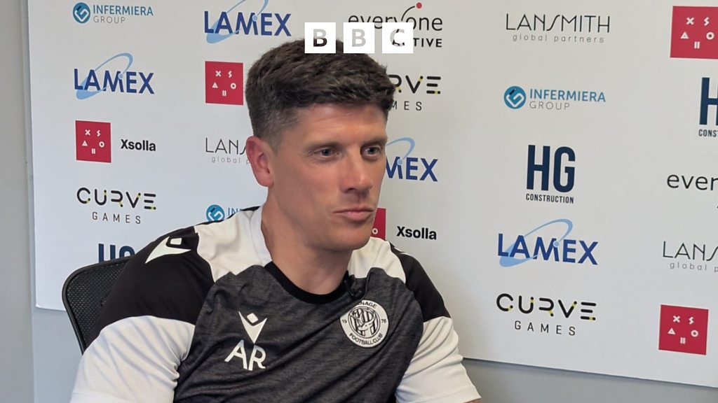 Stevenage manager Alex Revell talks to Dean Thompson ahead of the trip to Bradford.