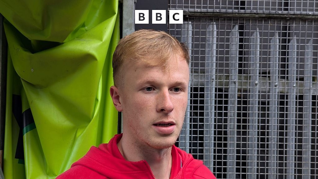 Filip Marschall reacts after Stevenage beat Bradford 1-0. Image: BBC