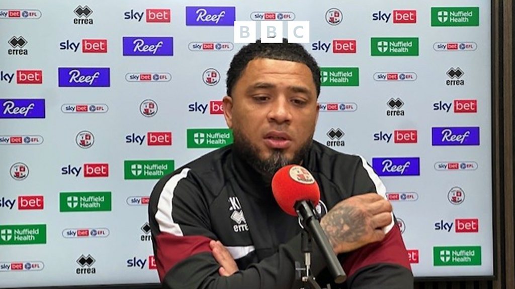 Colin Kazim-Richards talks to Robin Grey before the Accrington.