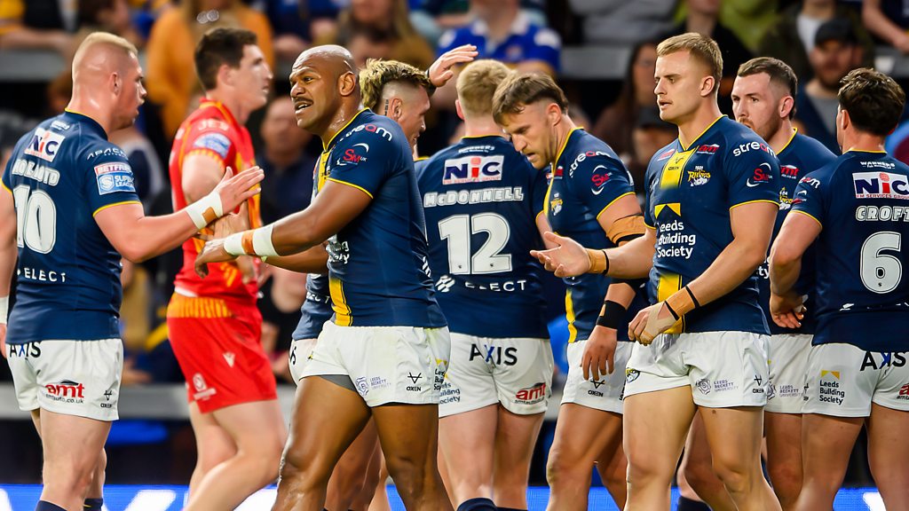 Action and reaction as Leeds Rhinos record emphatic victory over Catalans Dragons at AMT Headingley Stadium. {Commentary: James Deighton & Barry Eaton}