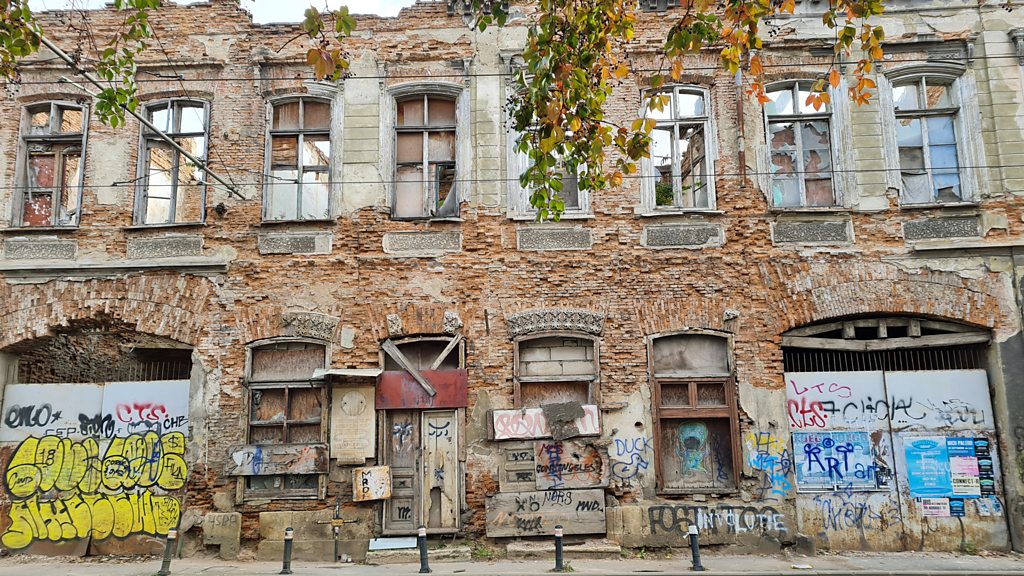 Bucharest, in Romania, is arguably Europe’s most dangerous capital city. It’s not the crime that’s the problem – it’s the buildings. Many of them don’t comply with basic laws and building regulations. Permits are regularly faked. And yet Bucharest is the most earthquake prone European capital. A serious quake would cause many of the buildings to collapse, with a potential loss of life into the thousands. Some years ago a red dot was put on a number of buildings in the city which were in danger of collapse. Nothing else has happened since. A microcosm of the problem is a type of building called ‘camine de nefamilisti’, or ‘homes for those without families’. These were built during the Ceaucescu era to temporarily house workers brought in from the countryside and people who were still single after university. The single room flats, the size of a prison cell, with a communal shower and toilet on each floor were never meant for families. But after the fall of Communism many of these ‘matchboxes’ ended up in private hands and conditions deteriorated, with whole families moved into spaces designed for a single person. Simona Rata grew up in one of these buildings. For Assignment, she returns to the ‘camine de nefamilisti’ and finds little has changed since her childhood. Reporter and producer: Simona Rata Assistant editor: John Murphy Editor: Bridget Harney (Image: Abandoned building on Calea Mosilor, a busy street in the centre of Bucharest. Credit: Simona Rata/BBC)